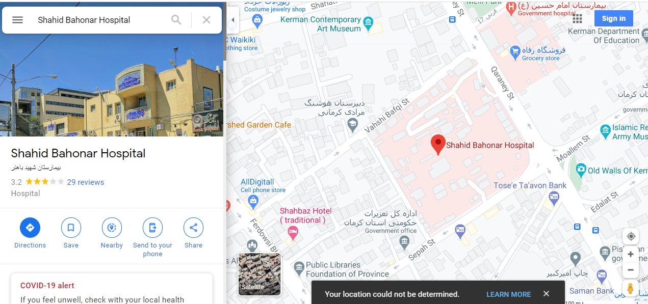 نشانی:کرمان خیابان قرنی - بیمارستان شهید باهنر